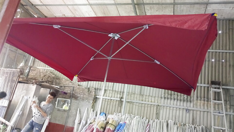 Kích thước ô: 2mx3m, đế 20kg, mái ô vải dù, xương 4 nan